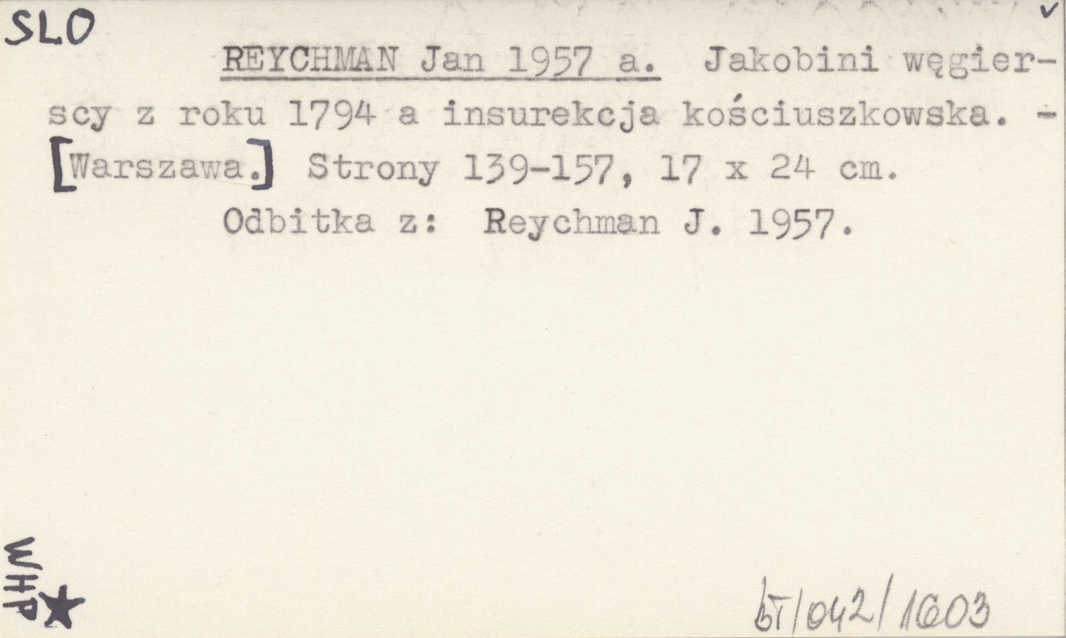 REYCHMAN Jan 1957 a Jakobini węgierscy z roku 1794 a insurekcja kościuszkowska.