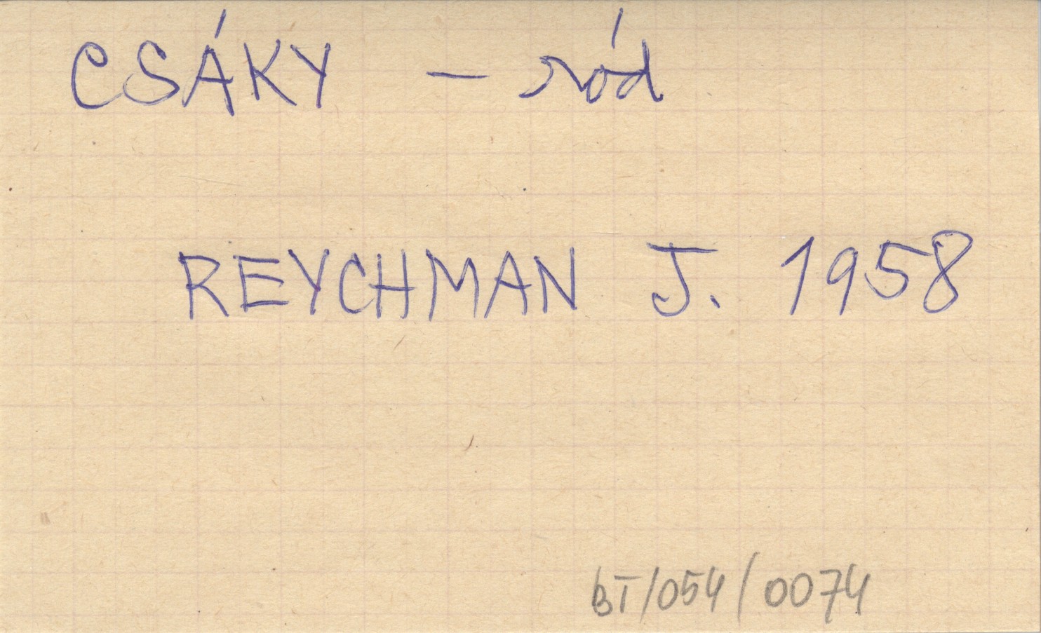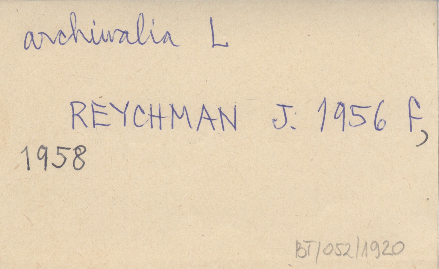 REYCHMAN Jan 1958 Levéltári alapleltárak. I. Országos Levéltár. 10. Gyűjtemének. [...] Budapest 1956.