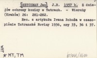 J.R. [REYCHMAN Jan] 1957 b Z dziejów ochrony kozicy w Tatrach.