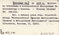 jr [REYCHMAN Jan] 1957 e Wycieczka tatrzańska w korespondencji Mieczysława Pawlikowskiego z Sewerem.