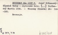 REYCHMAN Jan 1957 f Jozef Nižnanský: Západné Tatry - Liptovské Hole. [...] Turčanský Martin 1956.