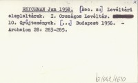 REYCHMAN Jan 1958 Levéltári alapleltárak. I. Országos Levéltár. 10. Gyűjtemének. [...] Budapest 1956.