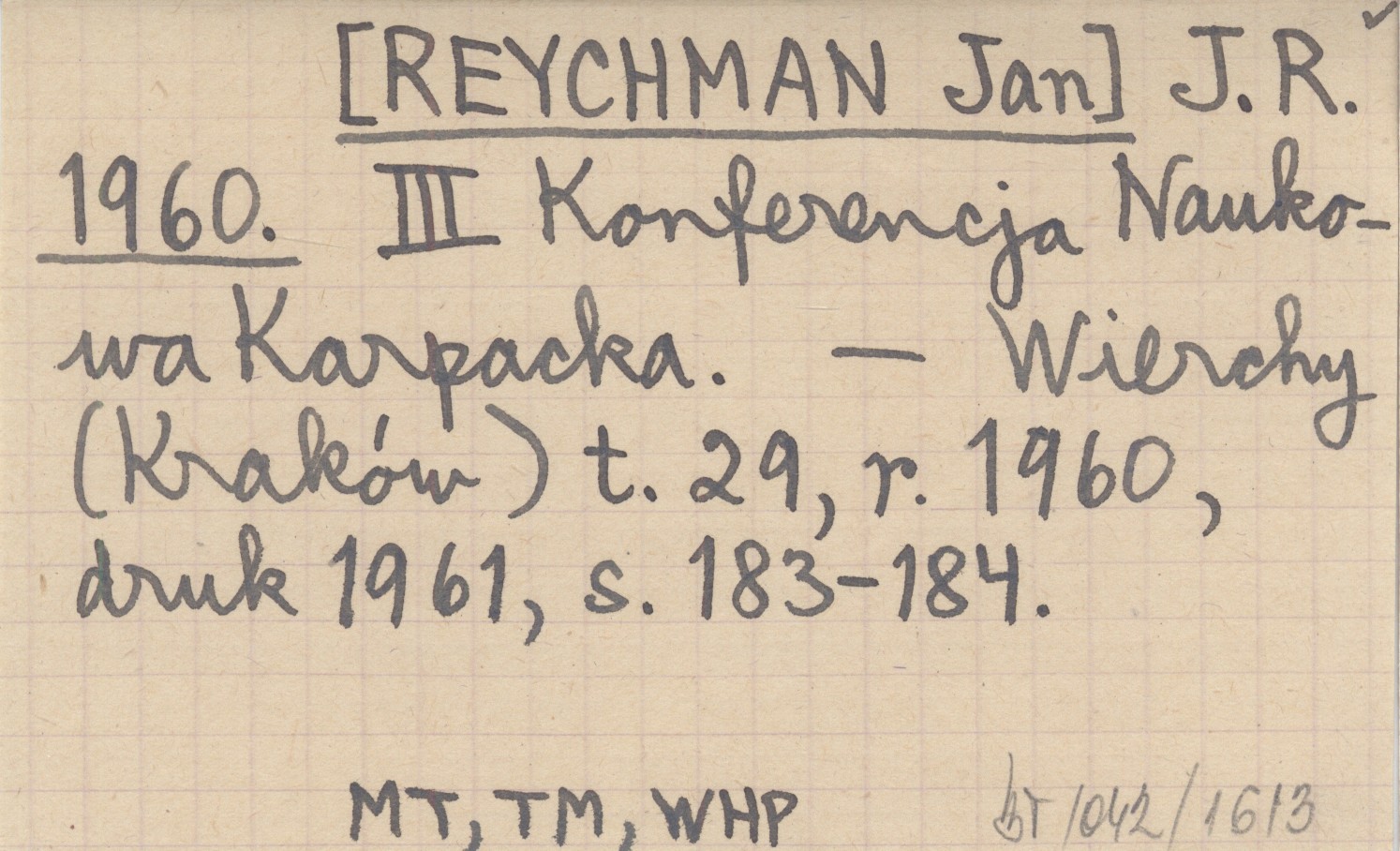 J.R. [REYCHMAN Jan] 1960 III Konferencja Naukowa Karpacka.
