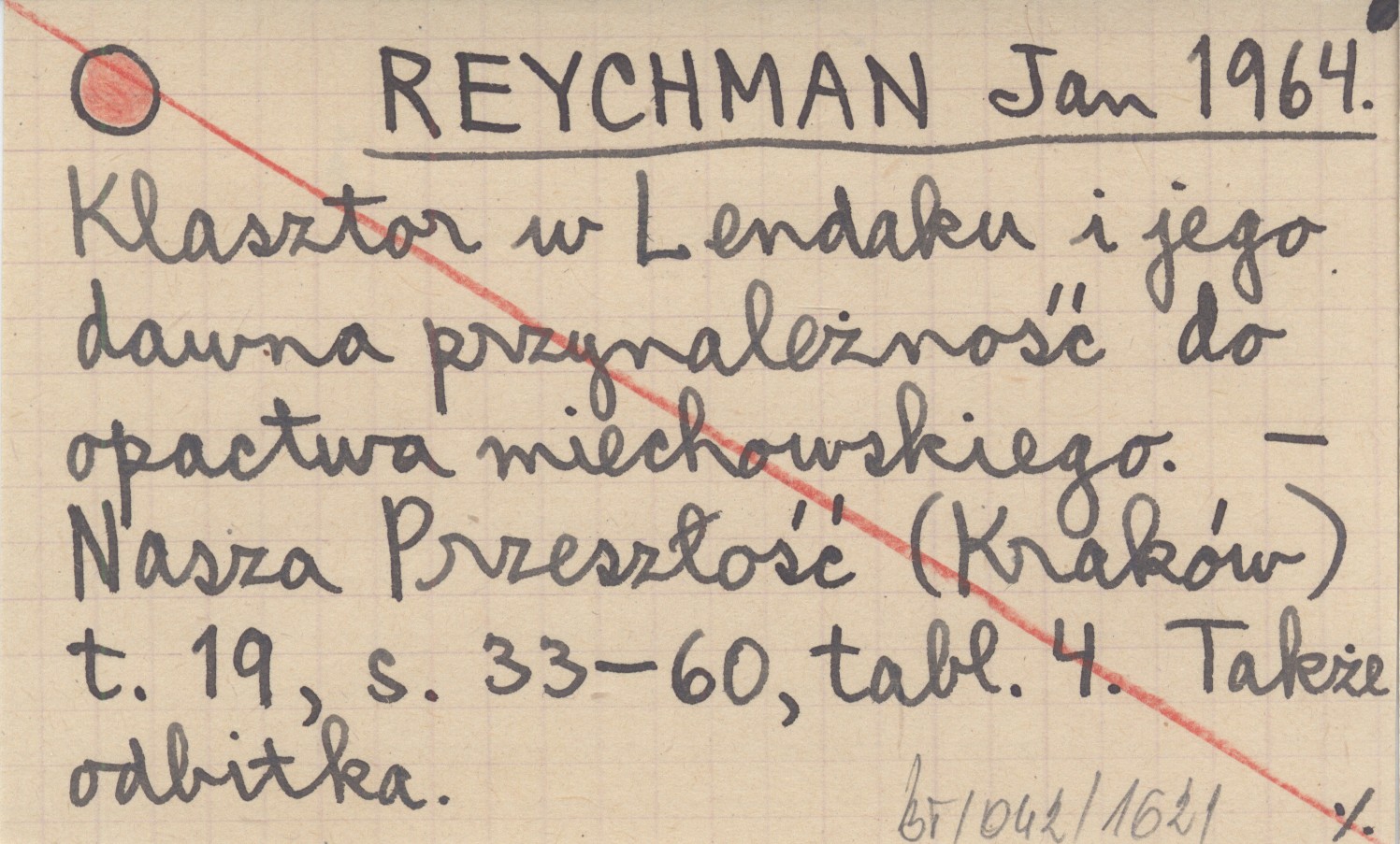 REYCHMAN Jan 1964 Klasztor w Lendaku i jego dawna przynależność do opactwa miechowskiego.