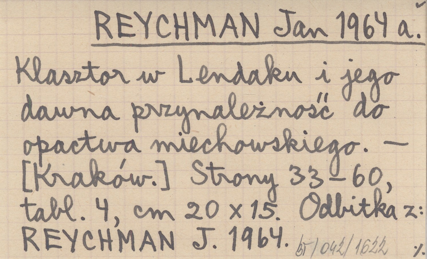 REYCHMAN Jan 1964 a Klasztor w Lendaku i jego dawna przynależność do opactwa miechowskiego.