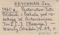 REYCHMAN Jan 1960 a Pasterstwo Tatr Polskich i Podhala pod redakcją W. Antoniewicza. Tom I [...]. [Recenzja].