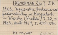 J. R. [REYCHMAN Jan] 1963 Węgierskie badania nad pasterstwem w Karpatach.