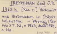 J. R. [REYCHMAN Jan] 1963 b Viehzucht und Hirtenleben in Ostmitteleuropa.