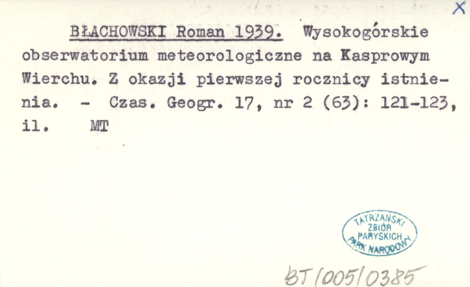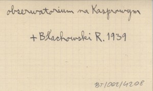 BŁACHOWSKI Roman 1939 Wysokogórskie obserwatorium meteorologiczne na Kasprowym Wierchu. Z okazji pierwszej rocznicy istnienia.