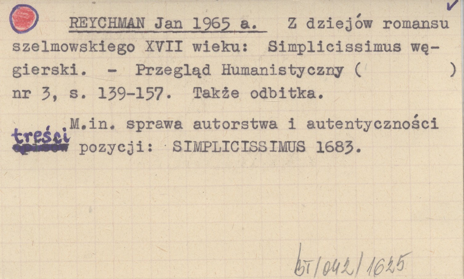 Przegląd Humanistyczny, Nr 3: 139-157. M.in. sprawa autorstwa i autentyczności treści pozycji: SIMPLICISSIMUS 1683. Także odbitka.