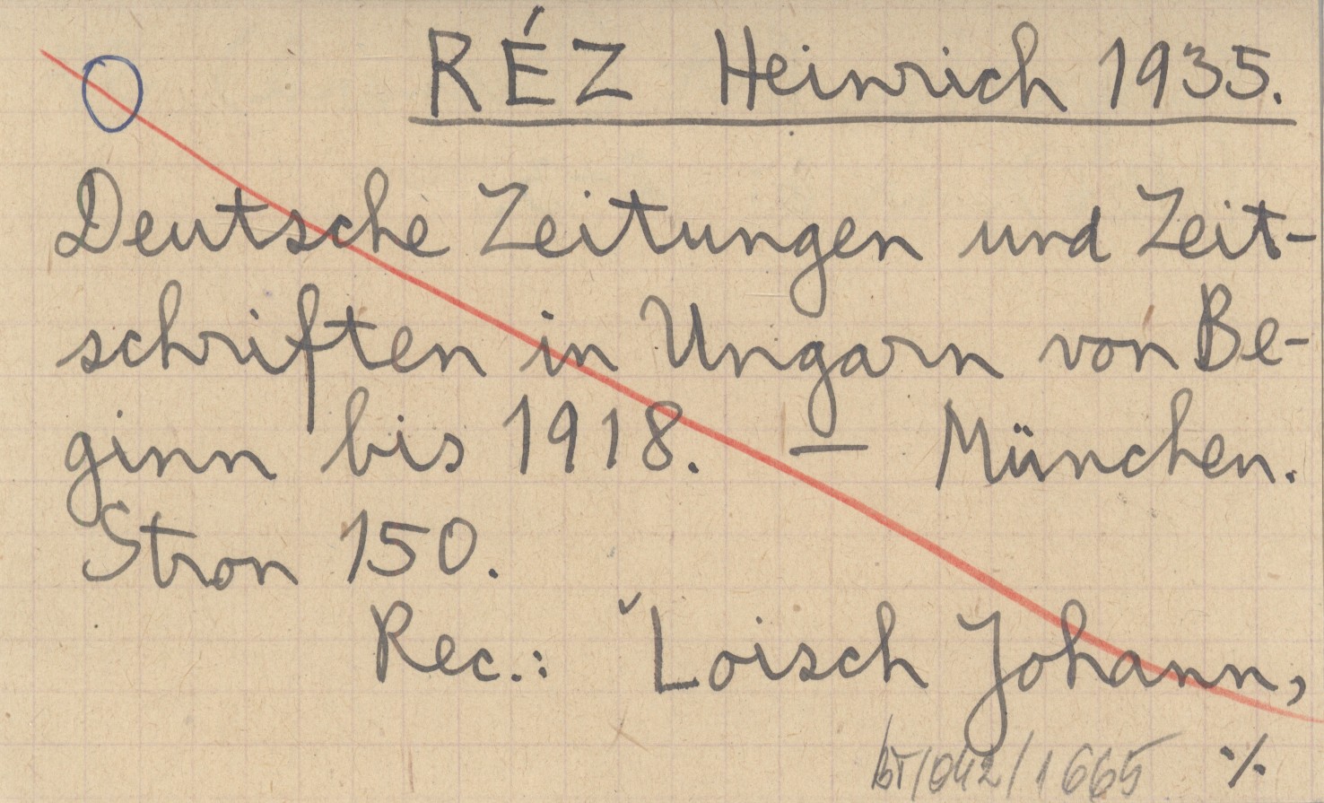 RÉZ Heinrich 1935 Deutsche Zeitungen und Zeitschriften in Ungarn von Beginn bis 1918.