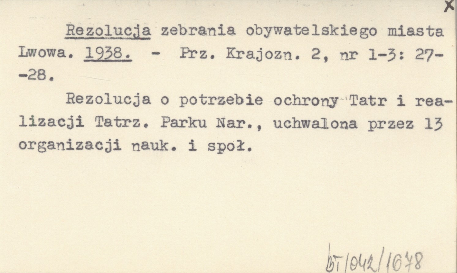 Przegląd Krajoznawczy, 2, nr 1-3: 27-28. Rezolucja o potrzebie ochrony Tatr i realizacji Tatrz. Parku Nar., uchwalona przez 13 organizacji nauk. i społ.