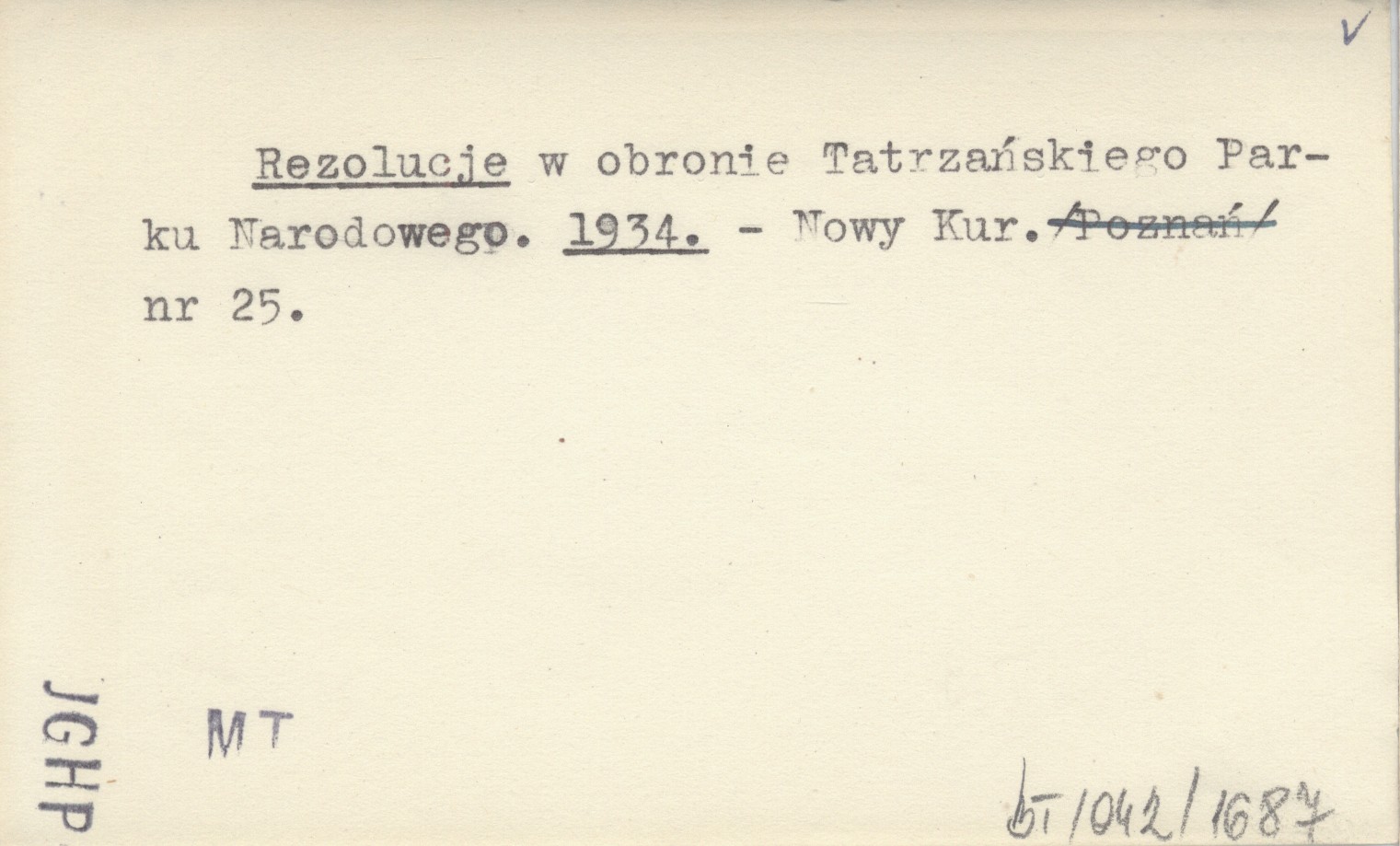 Rezolucje w obronie Tatrzańskiego Parku Narodowego. 1934