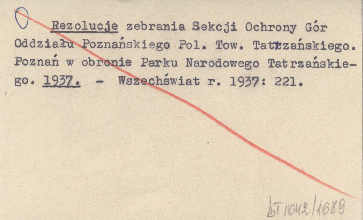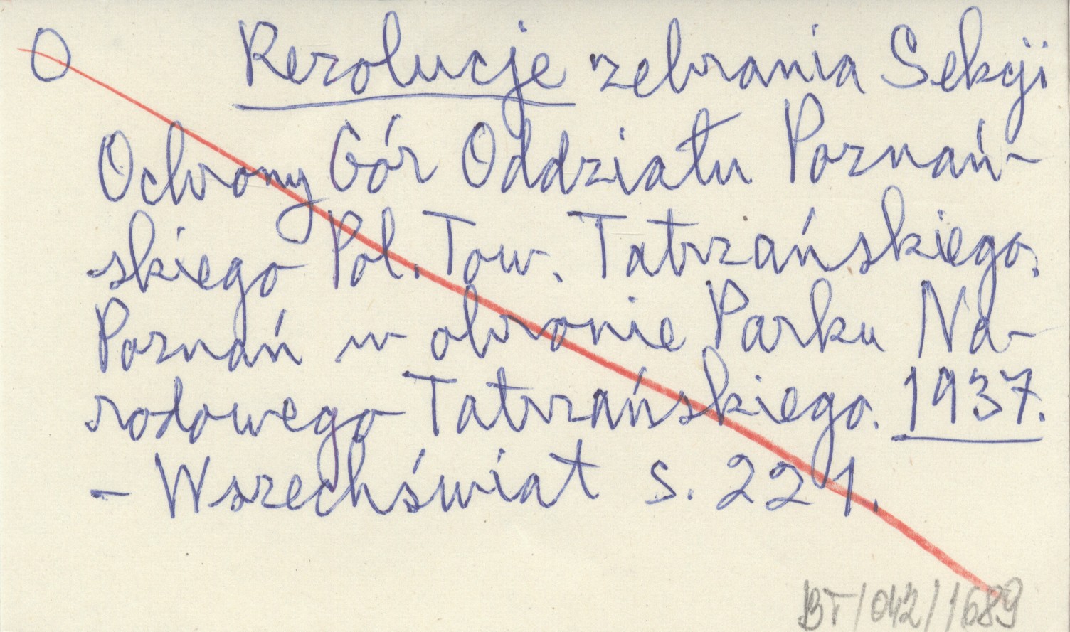 Rezolucje zebrania Sekcji Ochrony Gór Oddziału Poznańskiego Pol. Tow. Tatrzańskiego. Poznań w obronie Parku Narodowego Tatrzańskiego. 1937