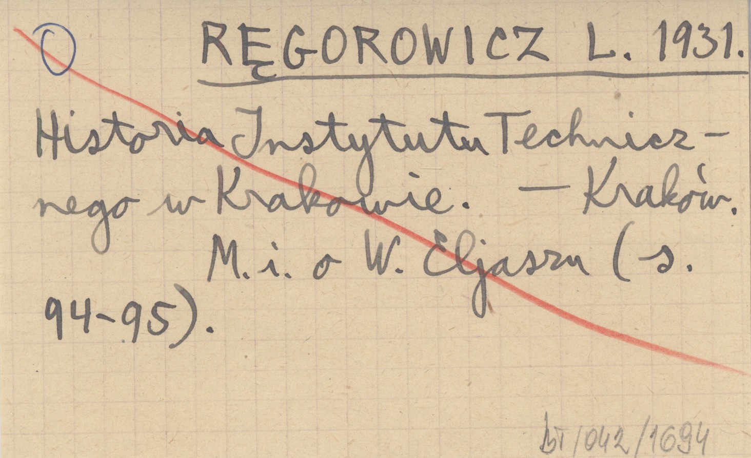 RĘGOROWICZ L. 1931 Historia Instytutu Technicznego w Krakowie.