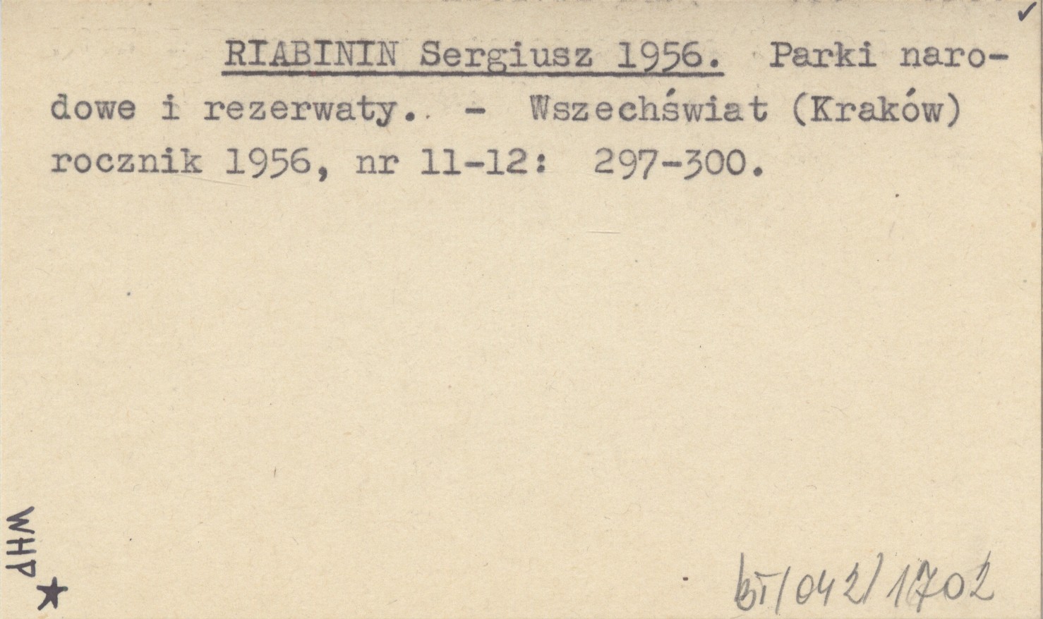 RIABININ Sergiusz 1956 Parki narodowe i rezerwaty.