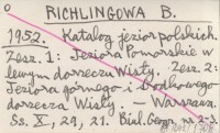 RICHLINGOWA B. 1952 Katalog jezior polskich. Zesz. 1: Jeziora Pomorskie w lewym dorzeczu Wisły. Zesz. 2: Jeziora górnego i środkowego dorzecza Wisły.