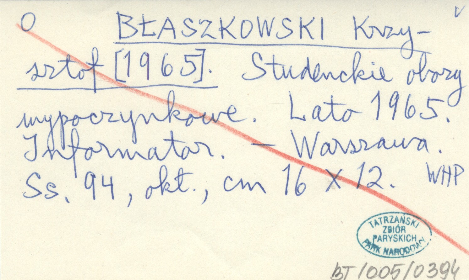 BŁASZKOWSKI Krzysztof [1965] Studenckie obozy wypoczynkowe. Lato 1965. Informator.