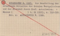 RICHTHOFEN B. 1929 Zur Bearbeitung der metallenen Schnallen der Goralen Westgaliziens und der Slowakei durch Prof. Antoniewicz.