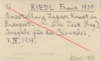 RIEDL Franz 1937 Ausstellung Zipser Kunst in Budapest.