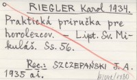 RIEGLER Karol 1934 Praktická priručka pre horolezcov.