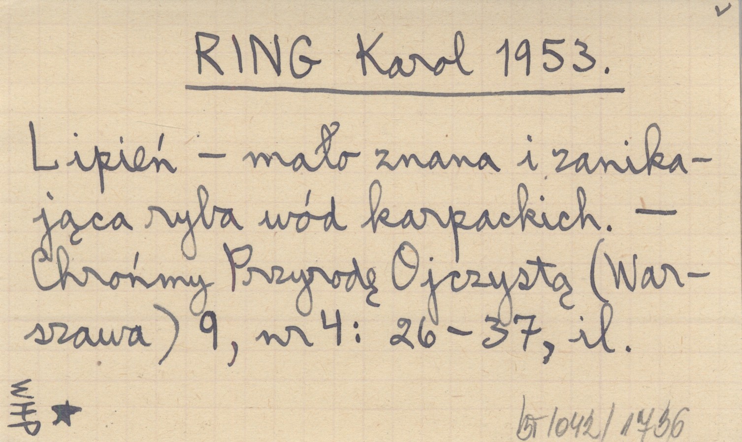 RING Karol 1953 Lipień - mało znana i zanikająca ryba wód karpackich.