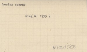 RING Karol 1953 a Dalsze wiadomości o bocianie czarnym.