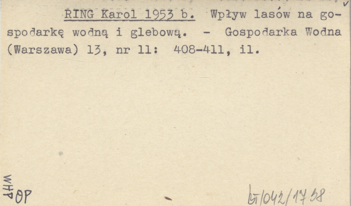 RING Karol 1953 b Wpływ lasów na gospodarkę wodną i glebową.