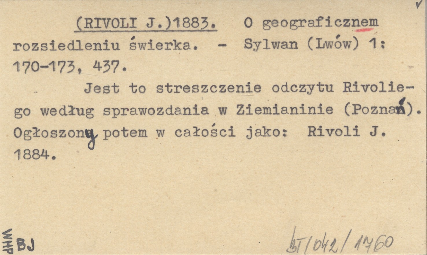 Sylwan (Lwów) , 1: 170-173, 437. Jest to streszczenie odczytu Rivoliego według sprawozdania w Ziemianinie (Poznań). Ogłoszony potem w całości jako: Rivoli J. 1884.
