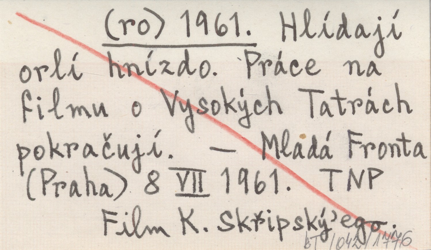 (ro) 1961 Hlídají orlí hnízdo. Práce na filmu o Vysokých Tatrách pokračují.