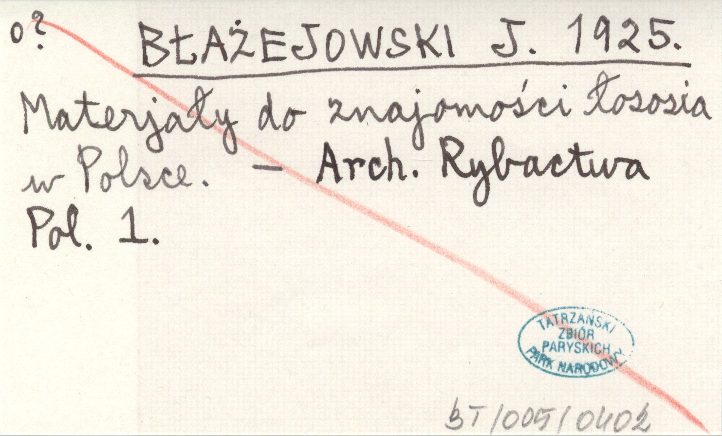 BŁAŻEJOWSKI J. 1925 Materjały do znajomości łososia w Polsce.