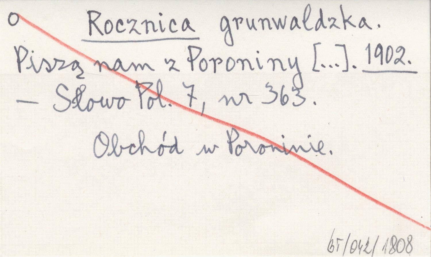 Rocznica grunwaldzka. Piszą nam z Poroniny [...]. 1902