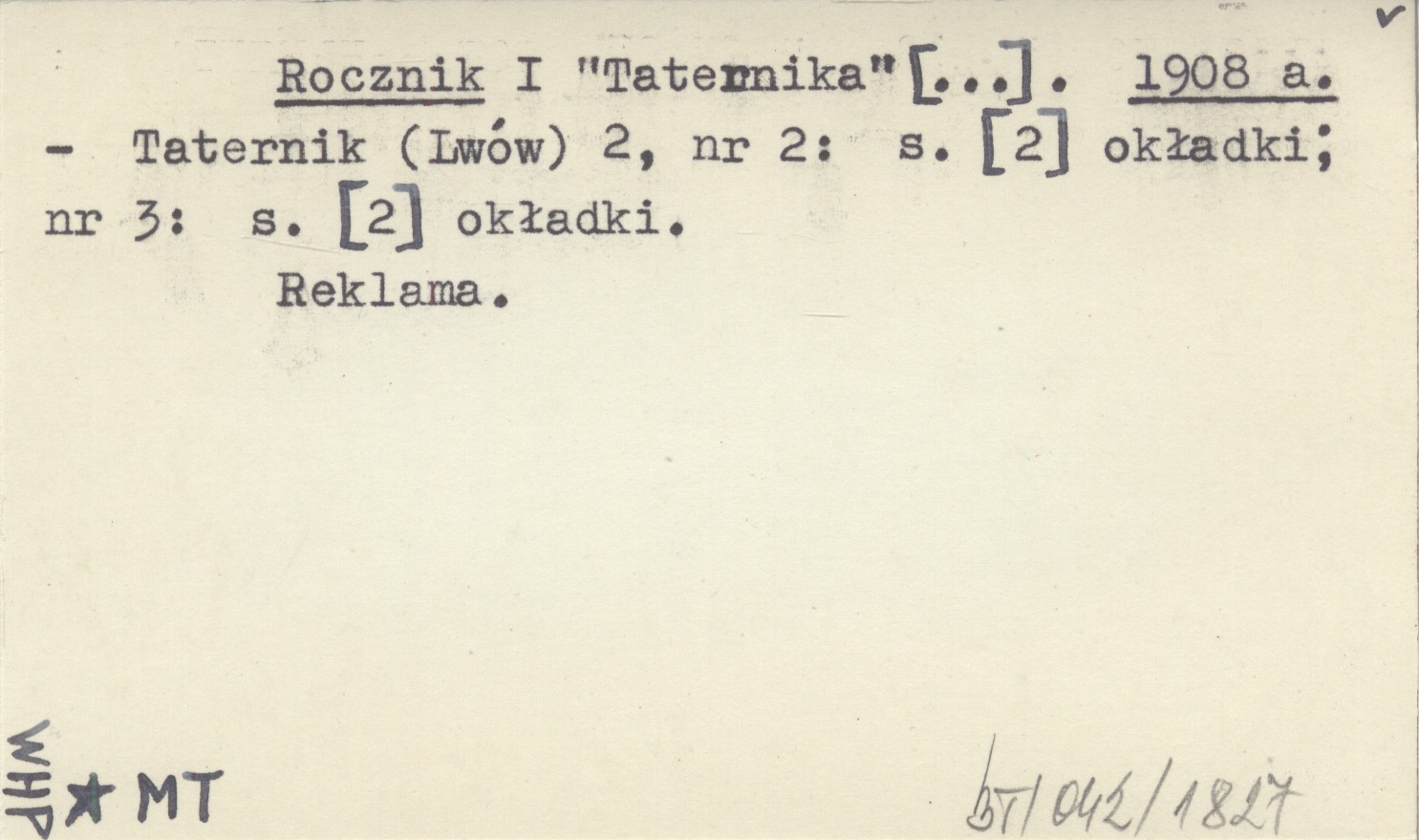 Taternik (Lwów) , 2, nr 2: [2] (okł.) ; nr 3: [2] (okł.). Reklama.