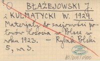 BŁAŻEJOWSKI J. KULMATYCKI, W. ; 1924 Materjały do znajomości połowów łososia w Polsce w roku 1923.