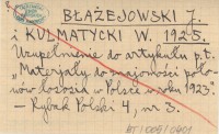 BŁAŻEJOWSKI J. KULMATYCKI, W. ; 1925 Uzupełnienie do artykułu p.t. "Materjały do znajomości połowów łososia w Polsce w roku 1923".