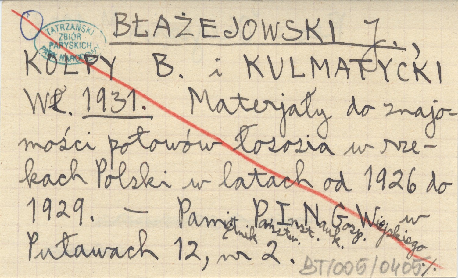 BŁAŻEJOWSKI J. KOLPY, B. ; KULMATYCKI, Wł. ; 1931 Materjały do znajomości połowów łososia w rzekach Polski w latach od 1926 do 1929.