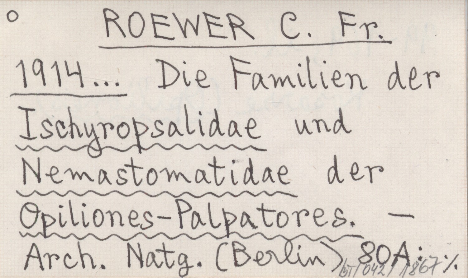 Die Familien der Ischropsalidae und Nemastomatidae der Opiliones-Palpatores.