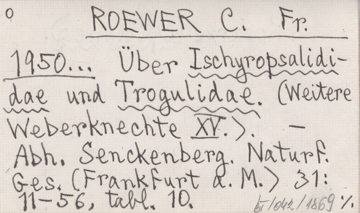 ROEWER C. Fr. 1950... Über Ischyropsalididae und Trogulidae. (Weitere Weberknechte XV).