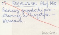 ROGALEWSKI Olaf 1972 Podstawy gospodarki przestrzennej w turystyce.