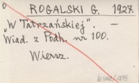 ROGALSKI G. 1927 "W Tatrzańskiej".