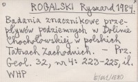 ROGALSKI Ryszard 1984 Badania znacznikowe przepływów podziemnych w Dolinie Chochołowskiej w polskich Tatrach Zachodnich.