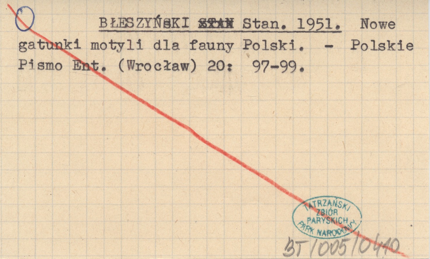 BŁESZYŃSKI Stan. 1951 Nowe gatunki motyli dla fauny Polski.