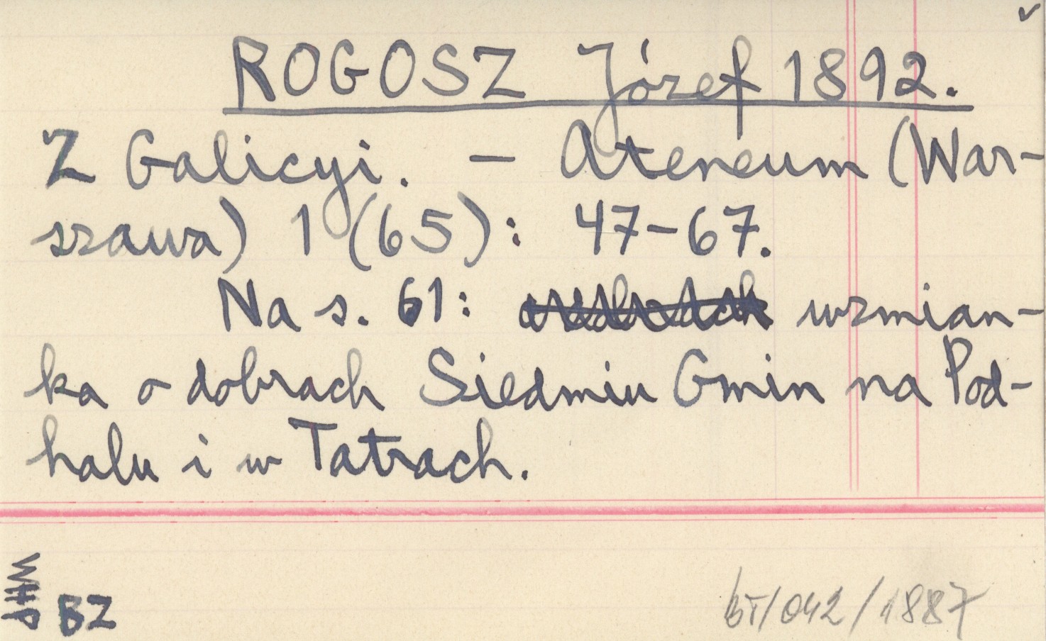 Ateneum (Warszawa) , 1 (65): 47-67. Na s. 61: wzmianka o dobrach Siedmiu Gmin na Podhalu i w Tatrach.