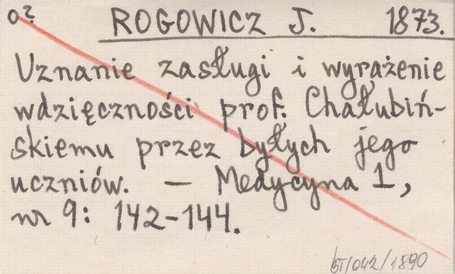 ROGOWICZ J. 1873 Uznanie zasługi i wyrażenie wdzięczności prof. Chałubińskiemu przez byłych jego uczniów.