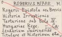 ROGERIUS M. 1755 M. Rogerii Epistola seu Brevis Historia Irruptionis Tartaricae sub Bela IV. Hungariae Rege.
