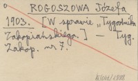 ROGOSZOWA Józefa 1903 [W sprawie "Tygodnika Zakopiańskiego].