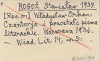 ROGOŻ Stanisław 1937 Władysław Orkan: Czantorja i pozostałe pisma literackie. Warszawa 1936.