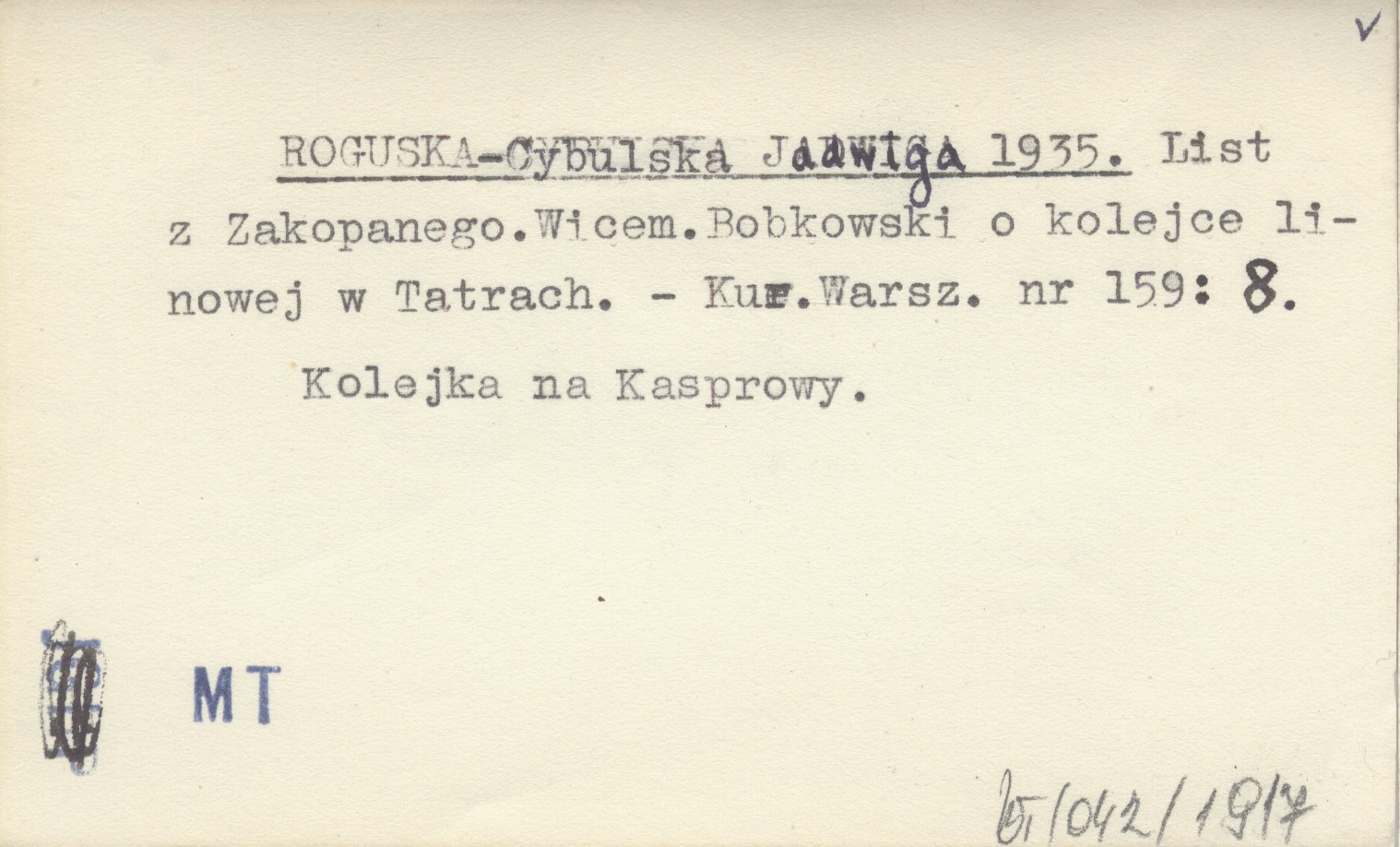 ROGUSKA-CYBULSKA Jadwiga 1935 List z Zakopanego.Wicem.Bobkowski o kolejce linowej w Tatrach.