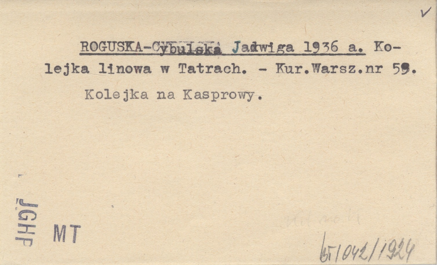 ROGUSKA-CYBULSKA Jadwiga 1936 a Kolejka linowa w Tatrach.