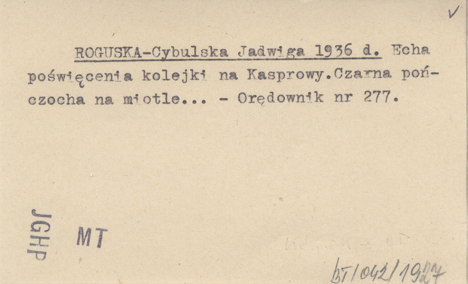ROGUSKA-CYBULSKA Jadwiga 1936 d Echa poświęcenia kolejki na Kasprowy.Czarna pończocha na miotle...